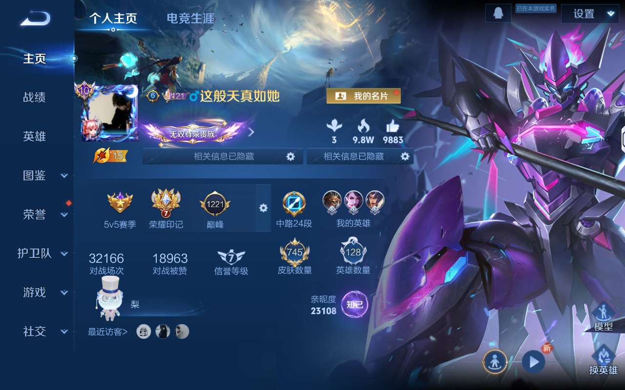 无双贵族V10♥746皮肤♥诸葛亮天机白泽♥死神系列黑崎一护,朽木白哉♥貂蝉繁花慕夏,全屏天幕♥千劫归真♥请先看最后一张图找客服♥不卡非☁♥166横行霸道