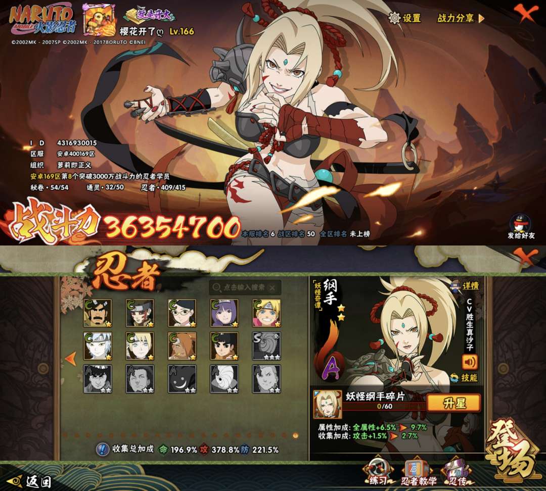 妖怪纲手 仙人巳月 侠隐佐助《漂泊带土💥附身黑绝 侠隐兜》全54S💥405忍💥3190万💥五影斑 新春大蛇丸 侠隐纲手《全漂泊忍 卑留呼》惊门凯/空导