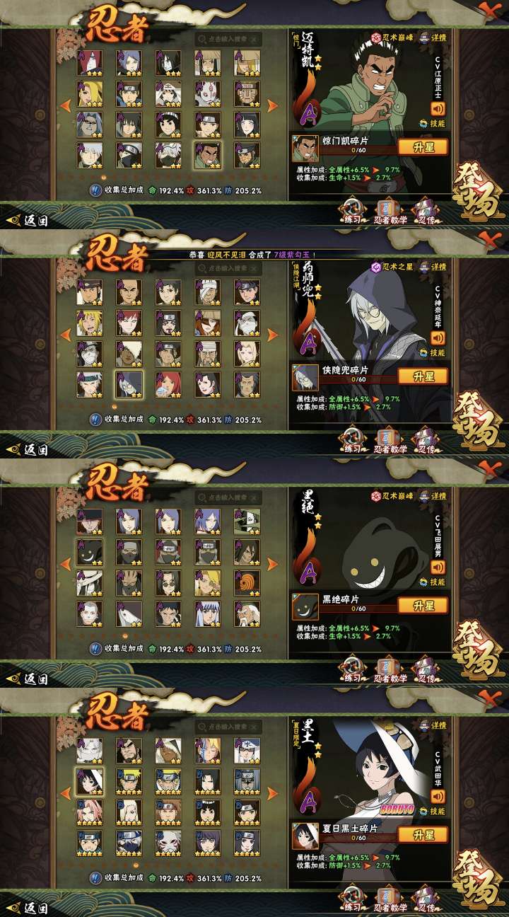 青年三船⭐忍战大野木⭐全忍者⭐死门凯⭐木叶创立斑⭐36S⭐71A⭐315忍⭐2050万⭐忍战凯 角色超级多喜欢直接下单丨恶意撤单必拉黑。