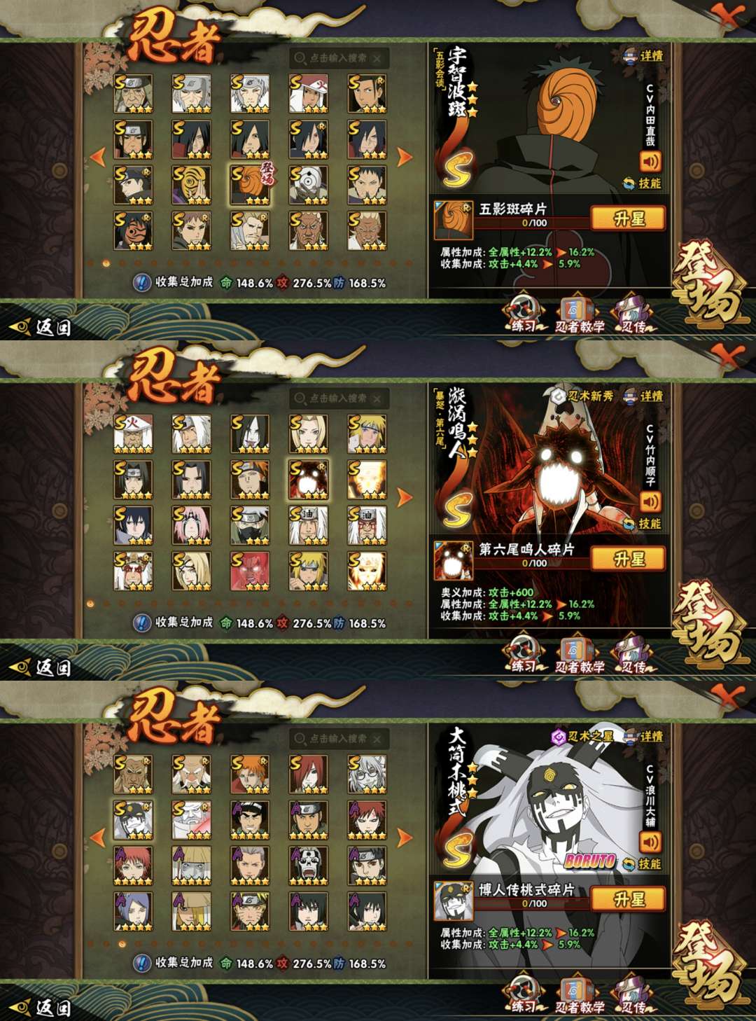 《九喇嘛水门 漂泊带土》全54S💥3420万💥395忍 新S暴怒六尾鸣人 五影斑 《附身黑绝 侠隐兜 漂泊小楠》💥武士二代/再不斩 暴怒带土/ 空导